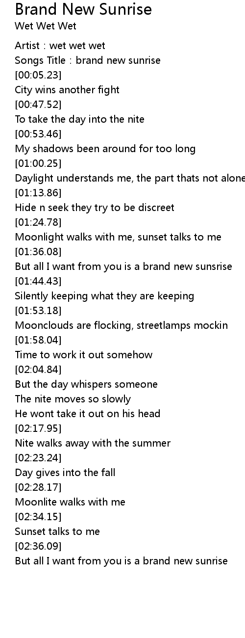 | [01:38.89] | But all I want from you is a brand new sunsrise |