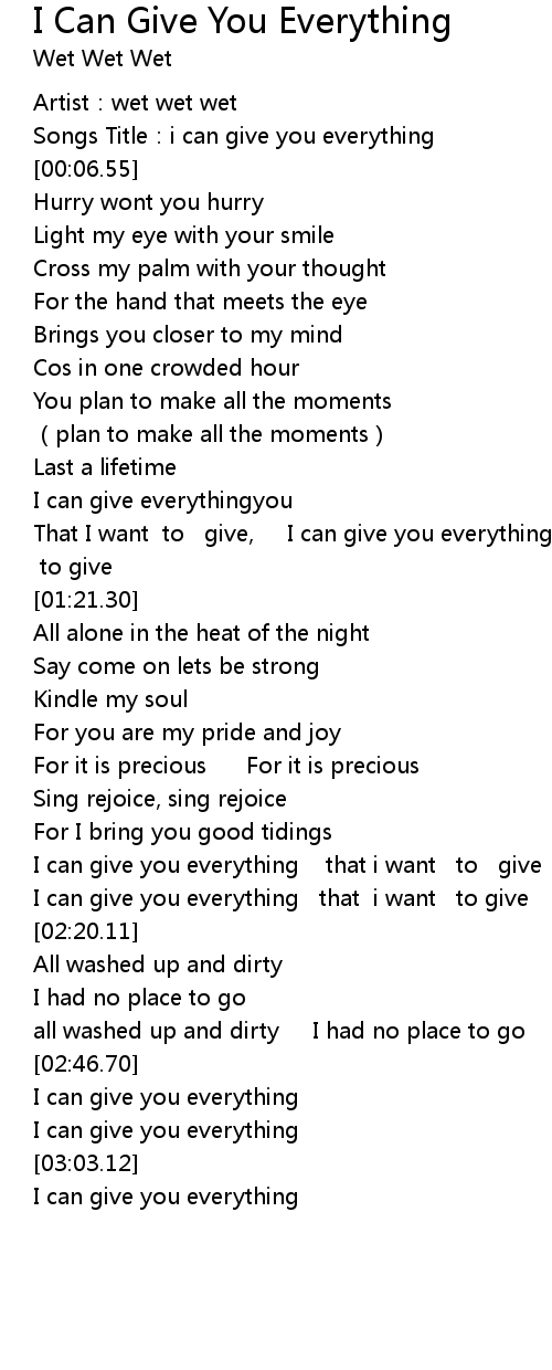 | [01:11.57] | That I want to give, I can give you everything that i want to give |