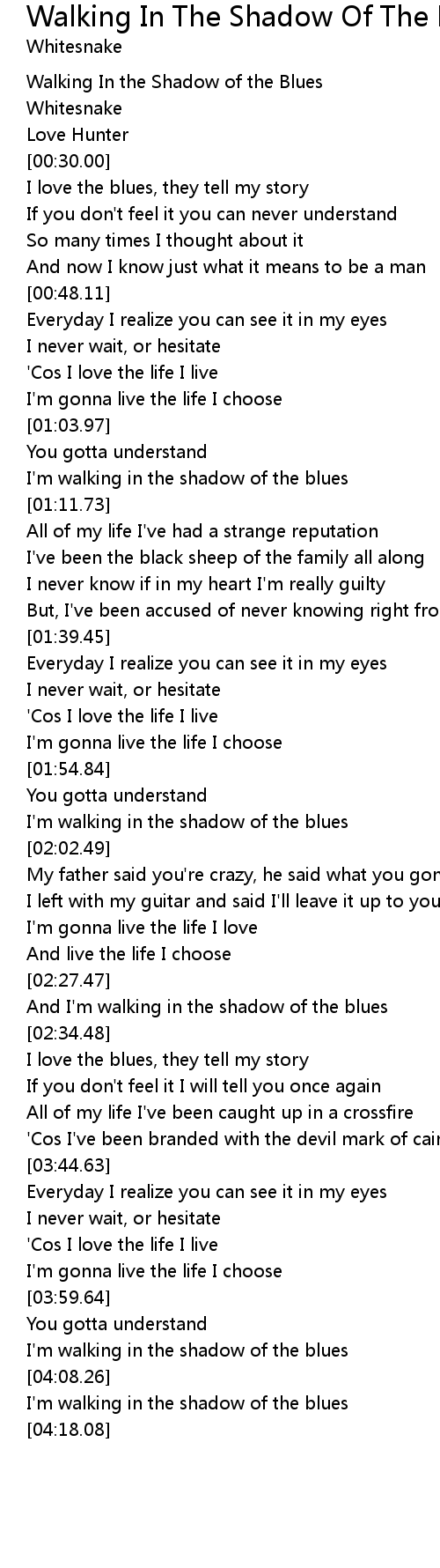 And I'm walking in the shadow of the blues |