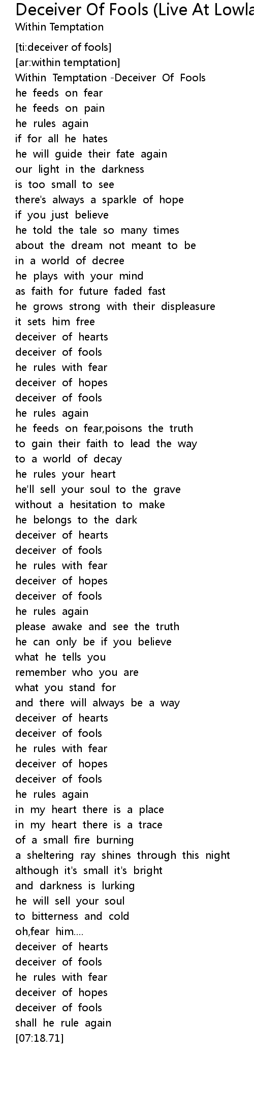 Deceiver Of Fools (Live At Lowlands 2002) Lyrics