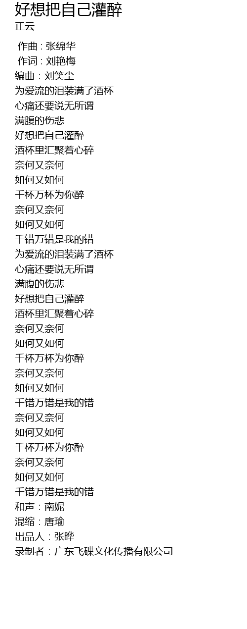 | [02:34.99] | qiān bēi wàn bēi wèi nǐ zuì |