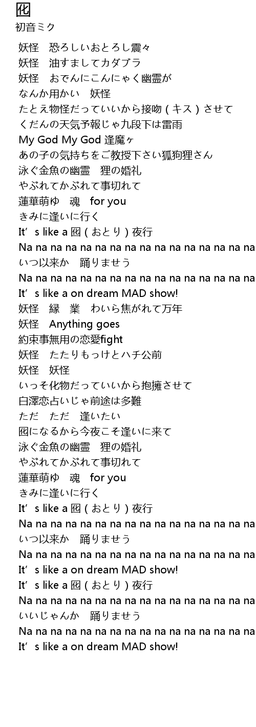 | [01:41.593] | 妖怪 Anything goes |
