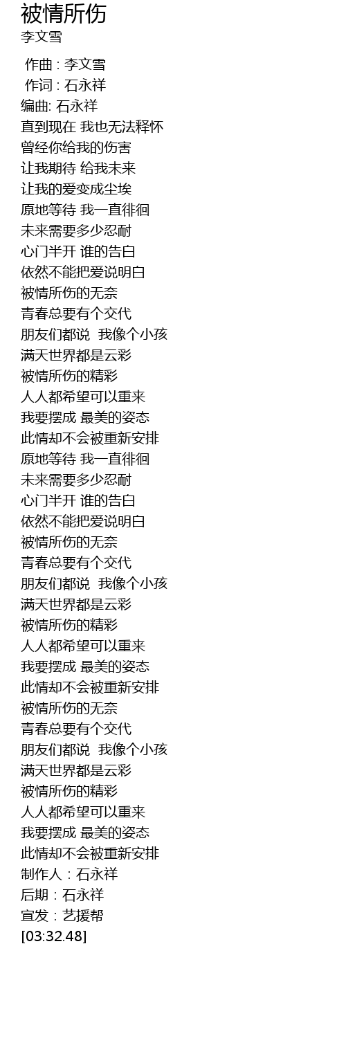 | [00:00.000] | zuò qǔ : lǐ wén xuě |