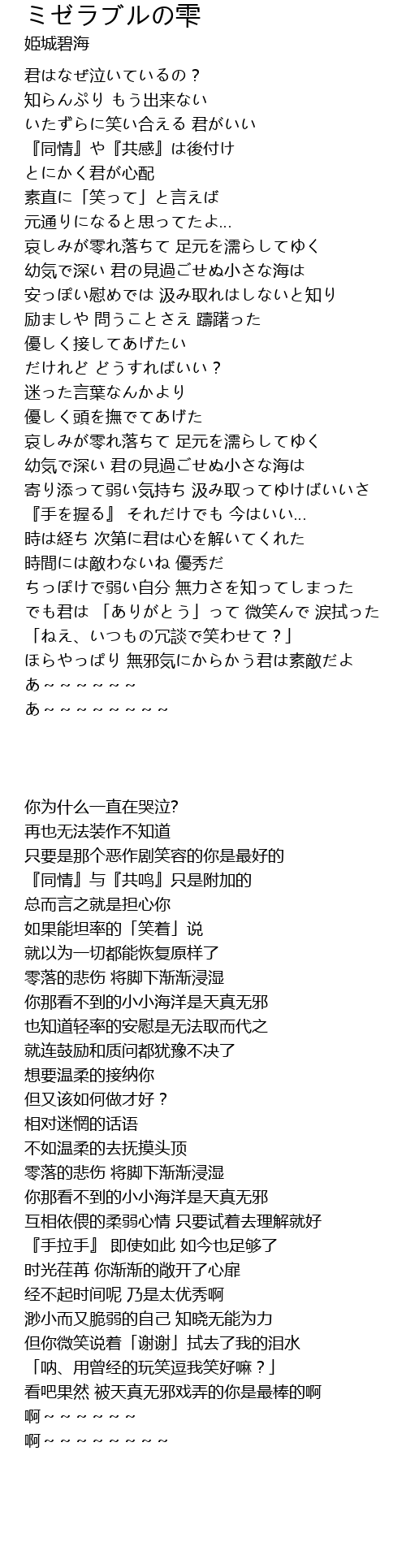 | Song | ミゼラブルの雫 |