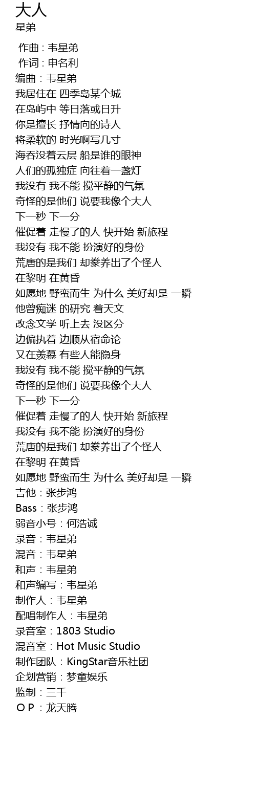 | [04:02.49] | 制作人:韦星弟 |