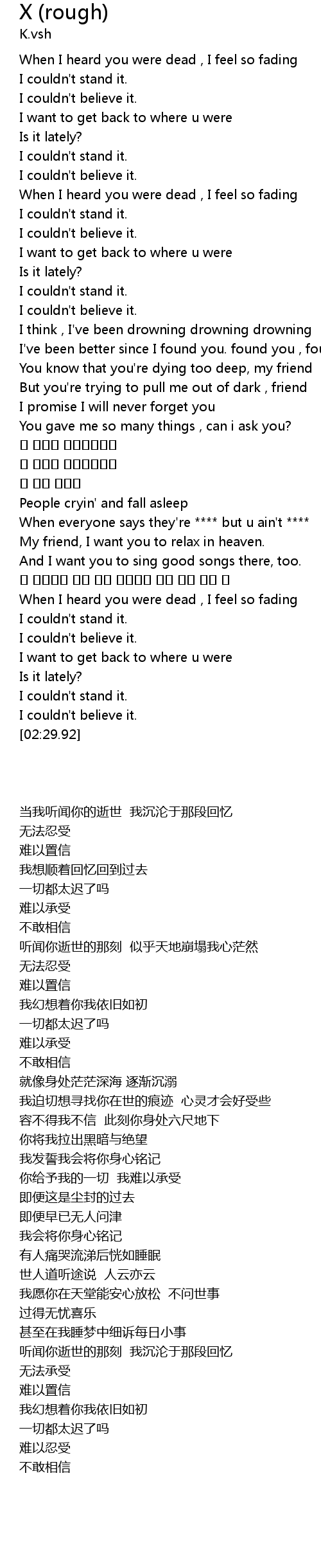 | [00:32.16] | When I heard you were dead , I feel so fading |