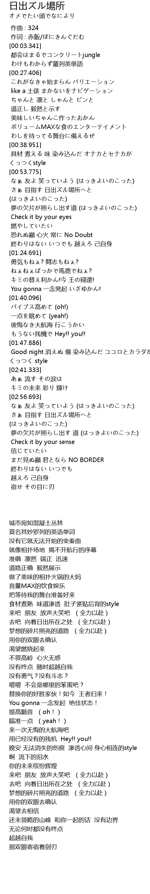 | [03:04.773] | さぁ 目指す 日出ズル場所へと (はっきよいのこった) |