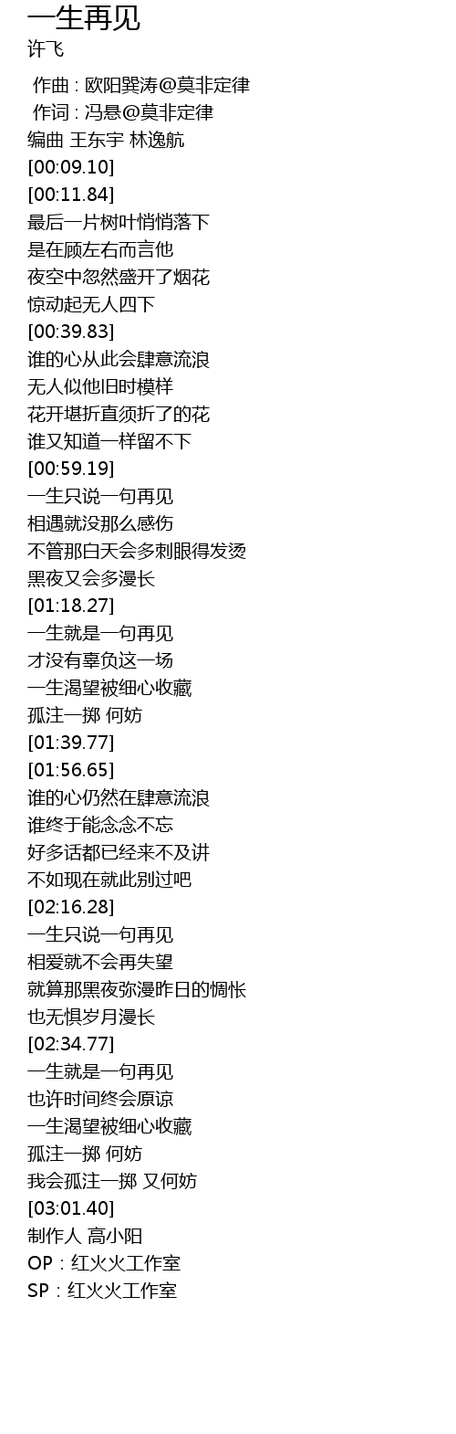 | [02:35.75] | yi sheng jiu shi yi ju zai jian |