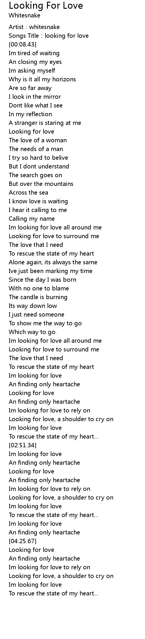 | [04:09.86] | Looking for love, a shoulder to cry on |