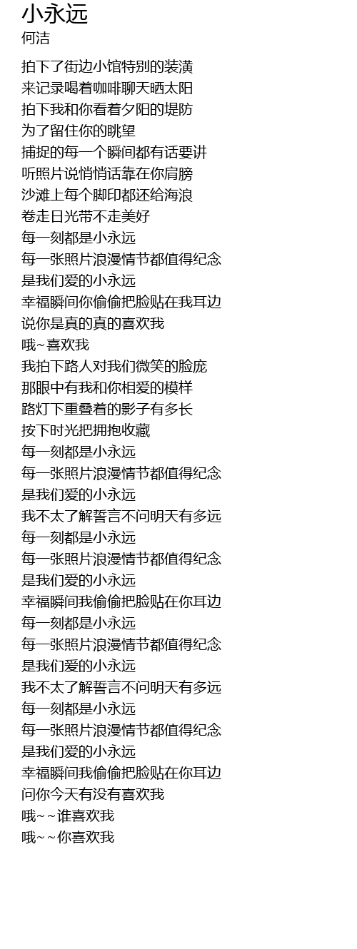 | [01:46.580] | měi yī kè dōu shì xiǎo yǒng yuǎn |