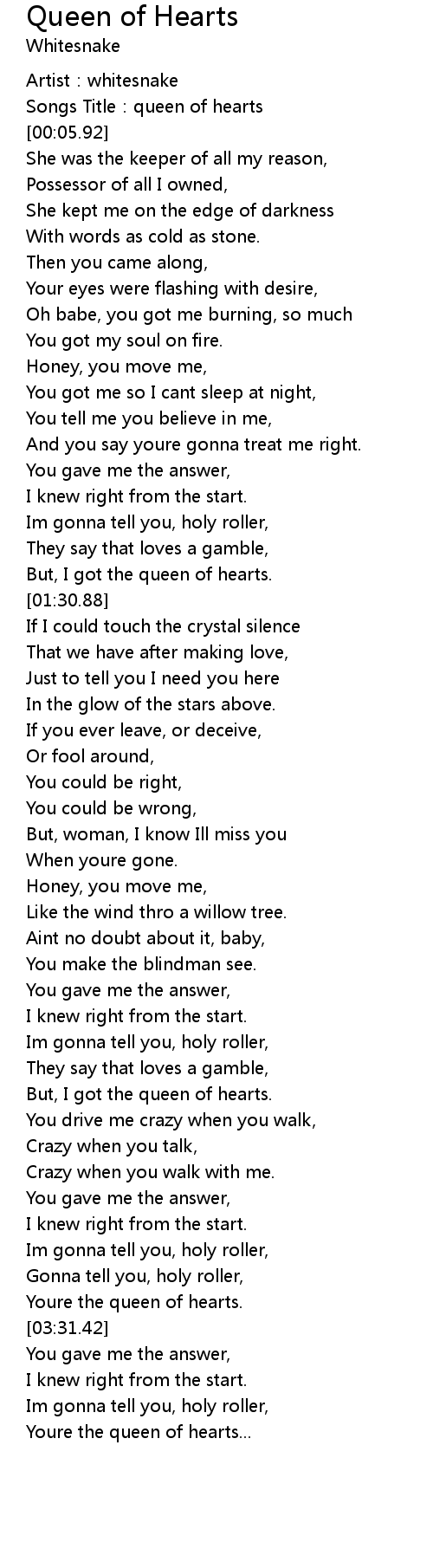 | [03:22.93] | Youre the queen of hearts. |