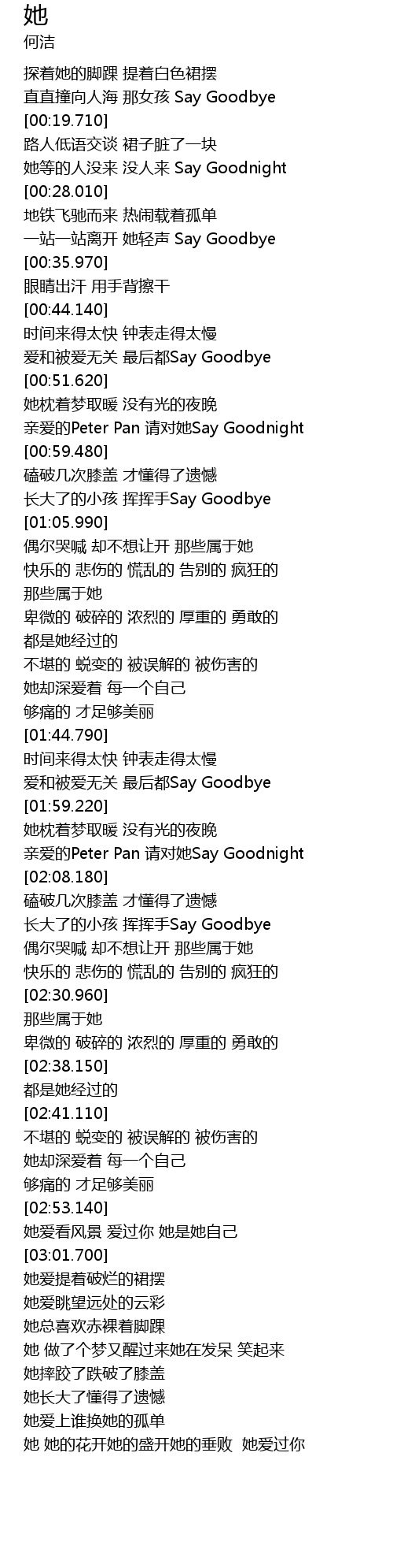| [02:55.090] | 她爱看风景 爱过你 她是她自己 |
