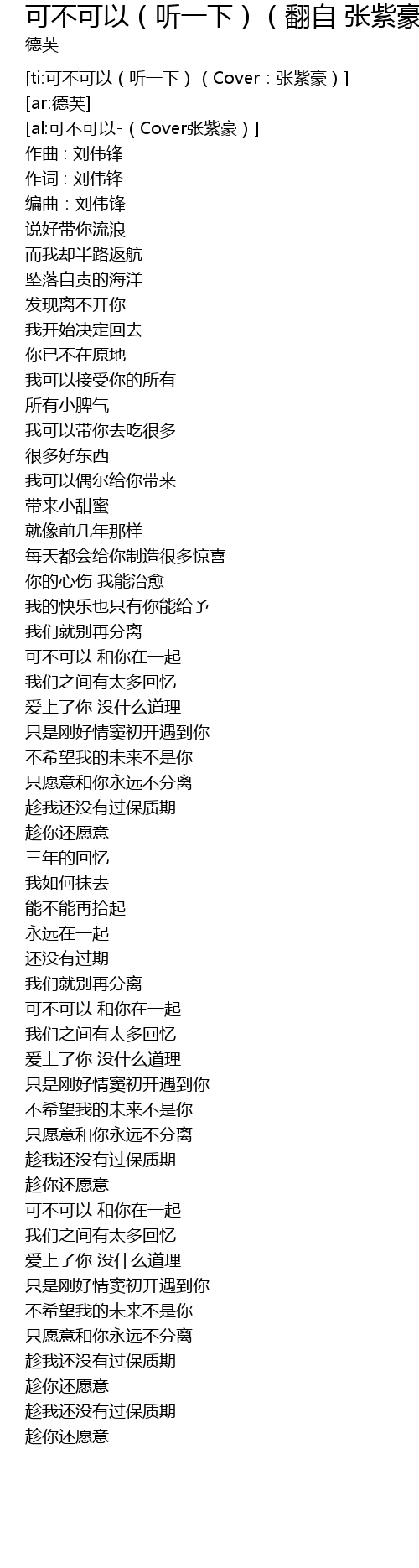 | [ti:可不可以(听一下)(Cover:张紫豪)] | |