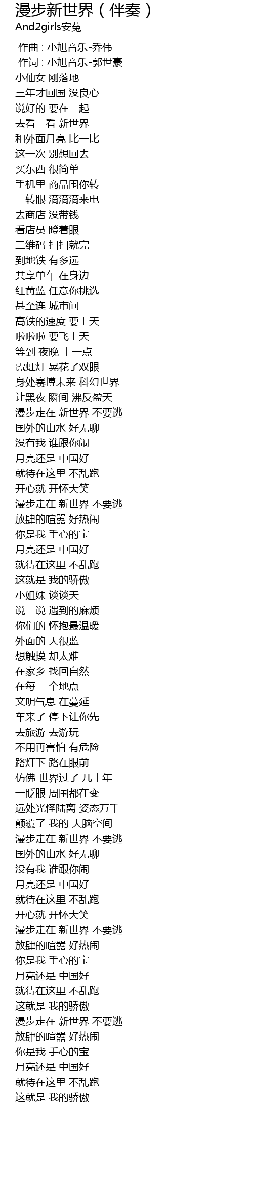 | [03:03.57] | 漫步走在 新世界 不要逃 |