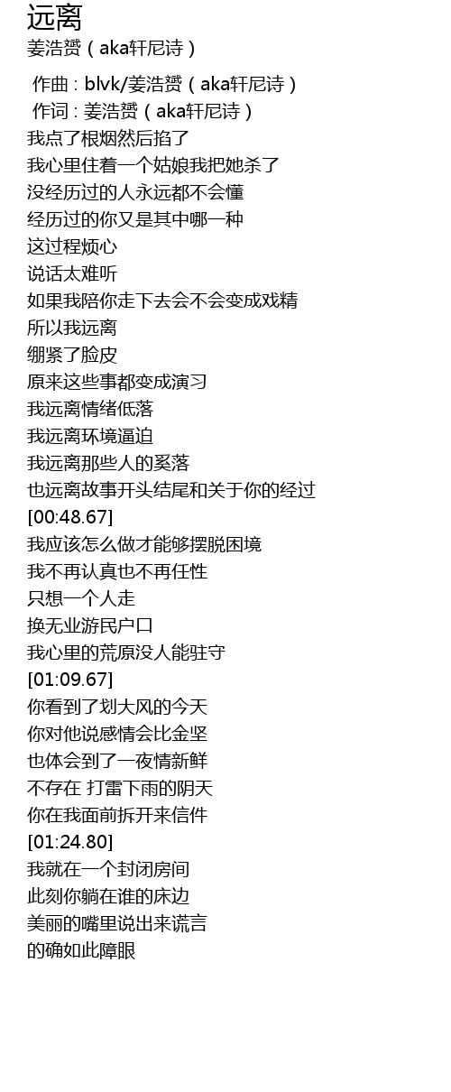 | [00:01.000] | 作词 : 姜浩赟(aka轩尼诗) |