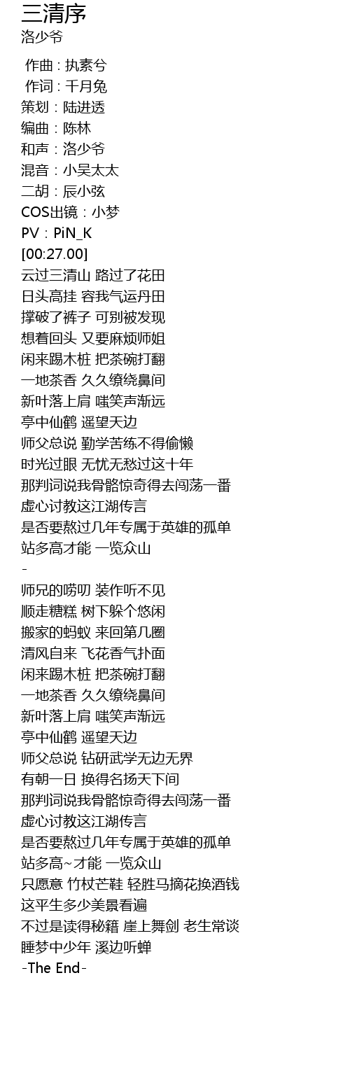 | [00:31.39] | 日头高挂 容我气运丹田 |