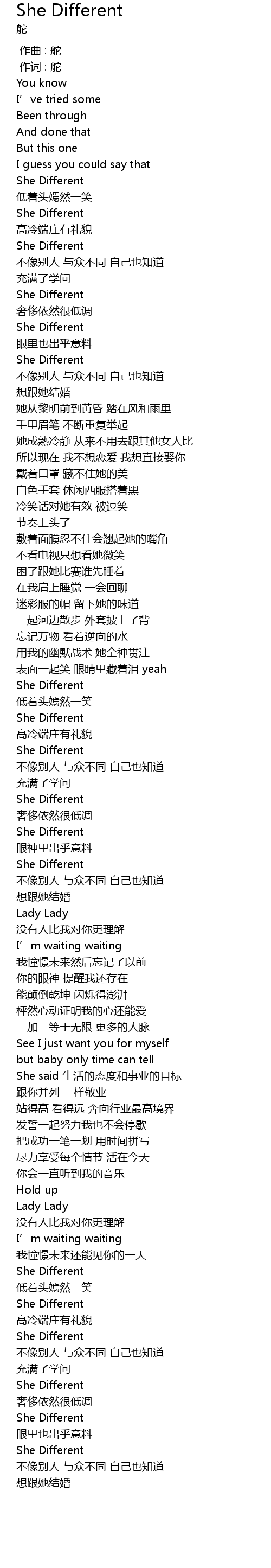 | [00:32.15] | 不像别人 与众不同 自己也知道 |