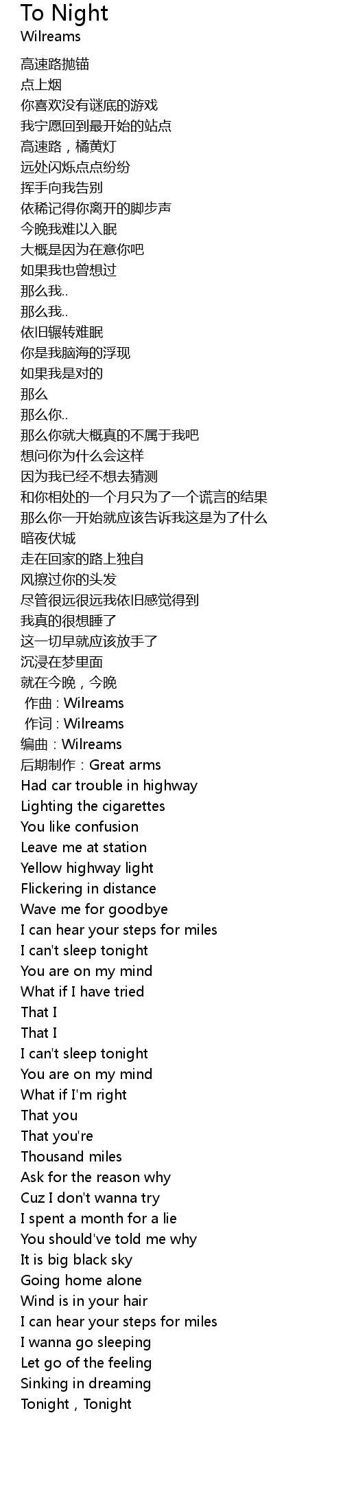 | [00:01.000] | 作词 : Wilreams |