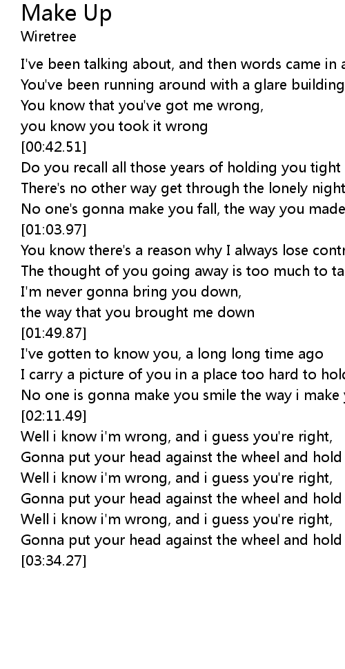 | [03:11.57] | Well i know i'm wrong, and i guess you're right, |