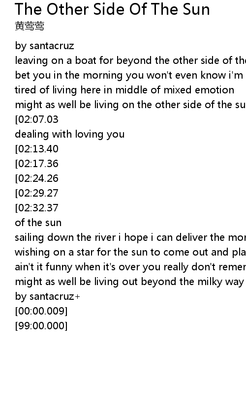 | [03:07.38][02:32.37][01:18.03] | and can bring me back from beyond the other side of the sun |
