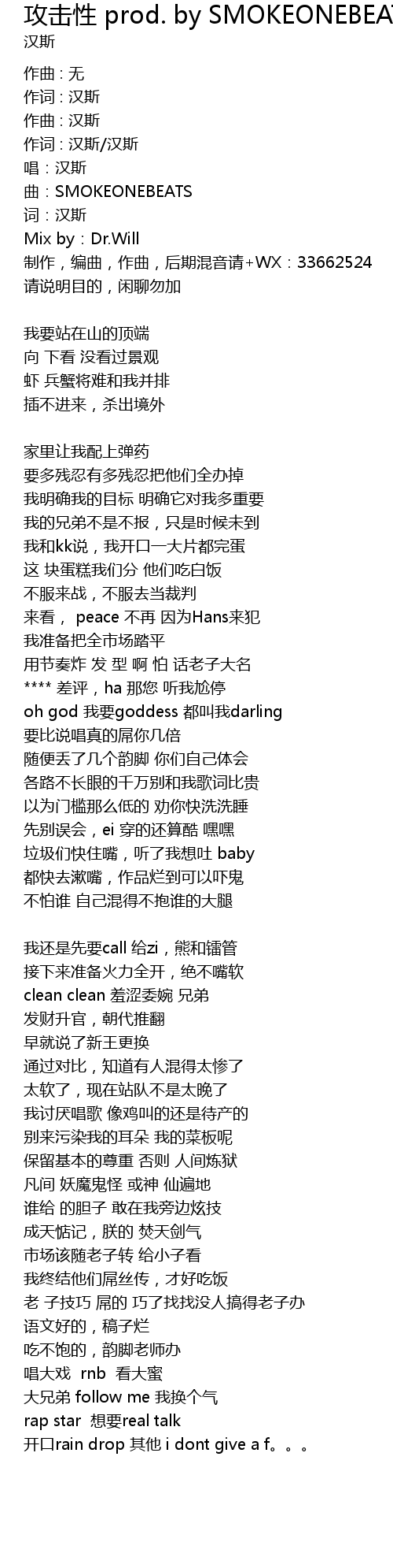 | 各路不长眼的千万别和我歌词比贵 | |