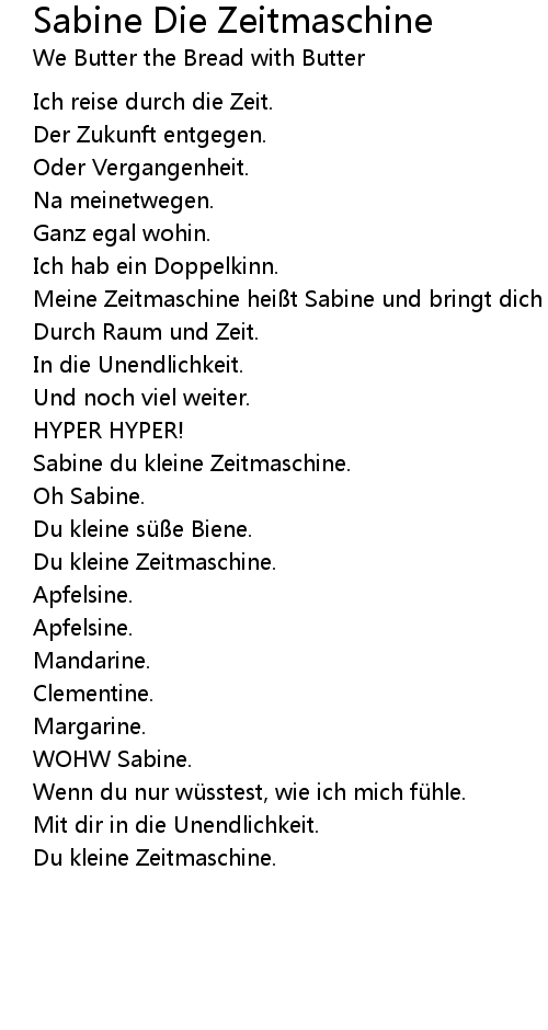 | Meine Zeitmaschine hei t Sabine und bringt dich ü berall hin. | |