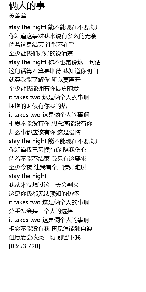 | [03:28.470] | it takes two 这是俩个人的事啊 |