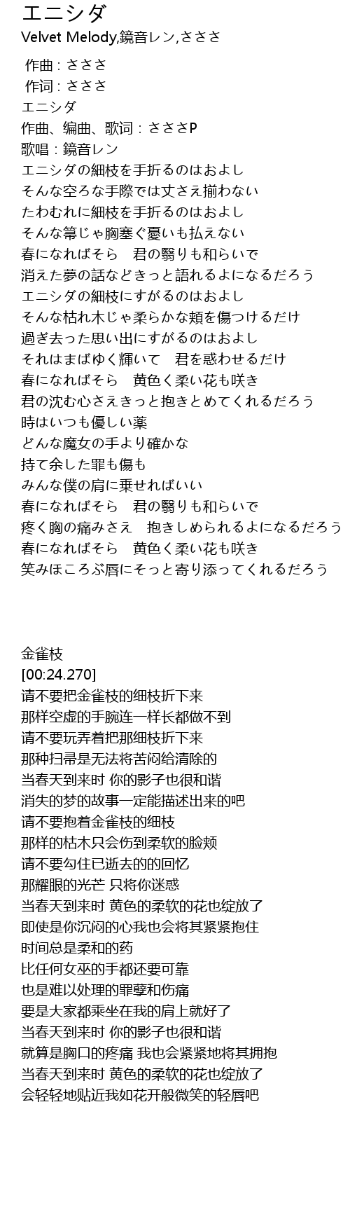 | [00:24.270] | 歌唱:鏡音レン |