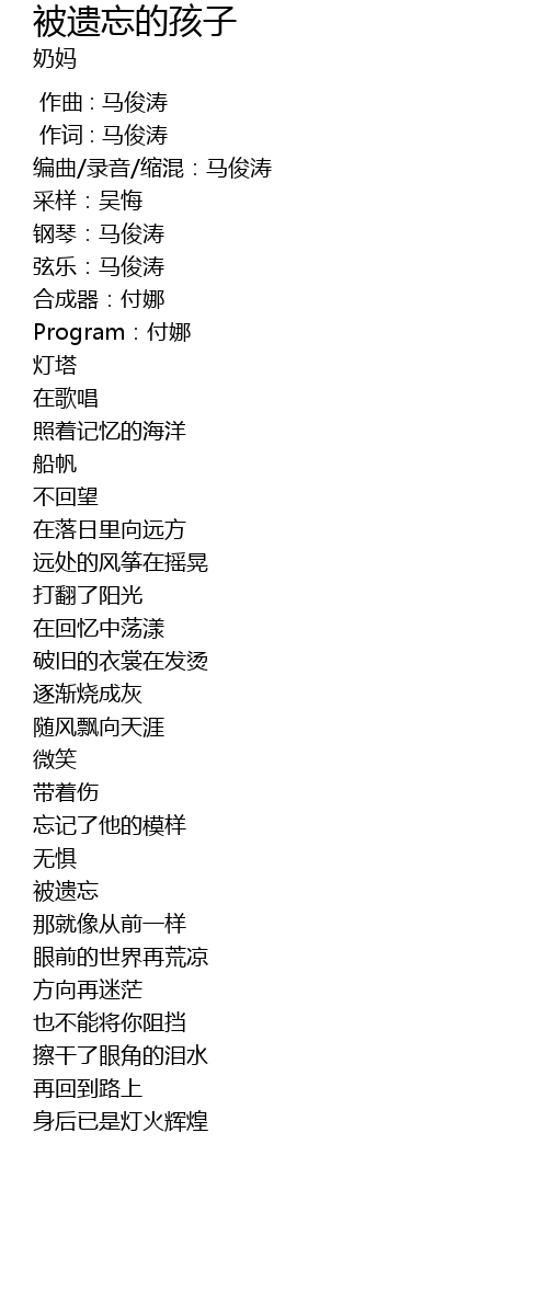 | [00:04.80] | 编曲/录音/缩混:马俊涛 |