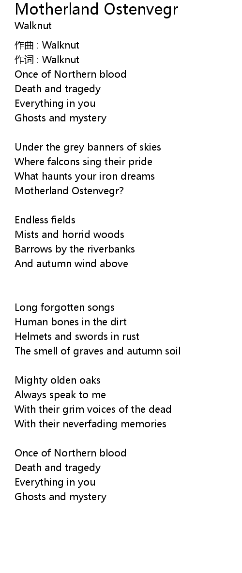 | Song | Motherland Ostenvegr |