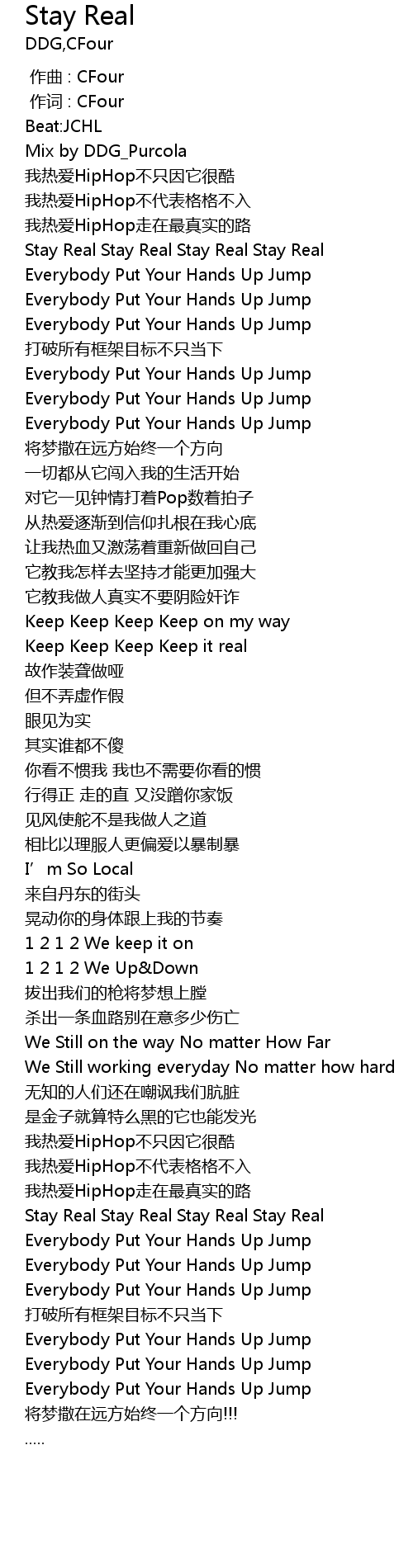 | [01:50.500] | Stay Real Stay Real Stay Real Stay Real |