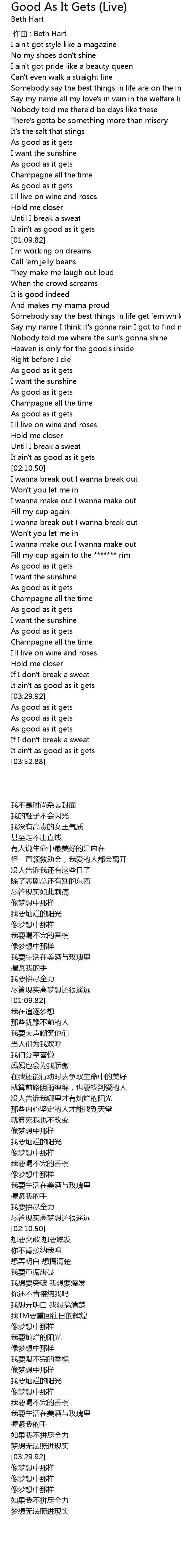 | [01:27.10] | Somebody say the best things in life get 'em while I can |