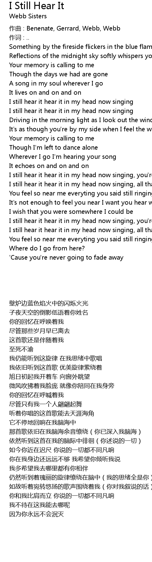 | I still hear it hear it in my head now singing, you' re in my head | |