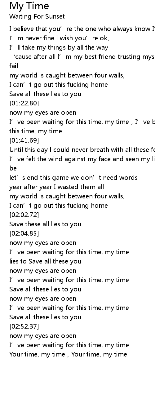 | [02:56.42] | I’ve been waiting for this time, my time |