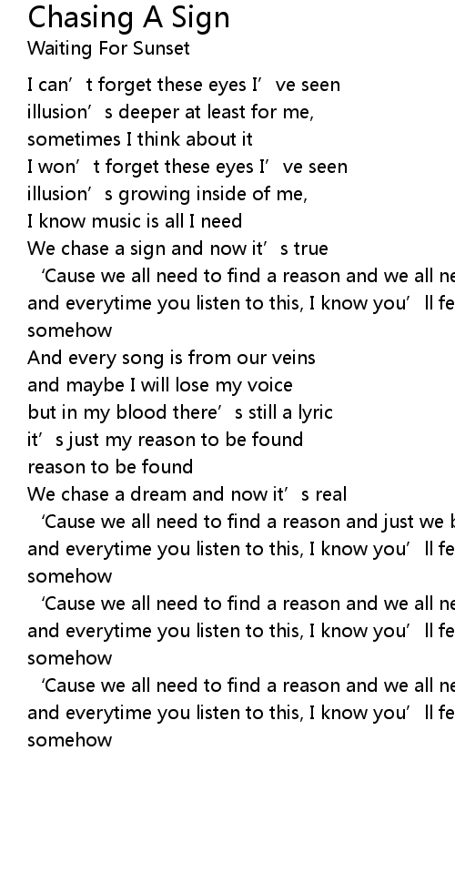 | Song | Chasing A Sign |