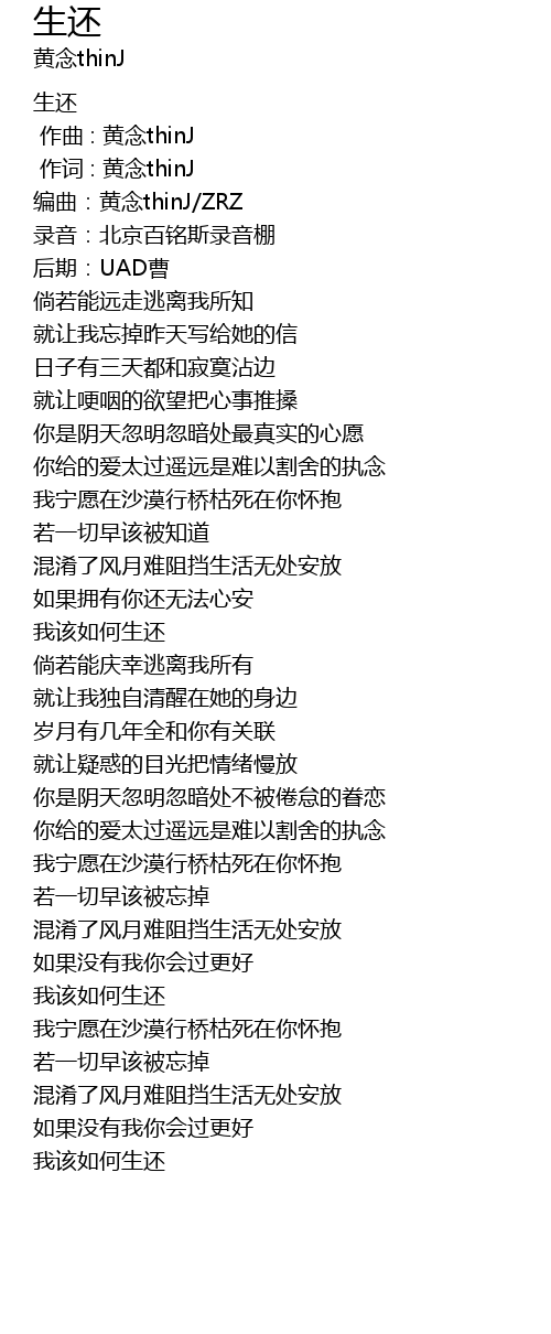 | [00:05.130] | biān qǔ: huáng niàn thinJ ZRZ |