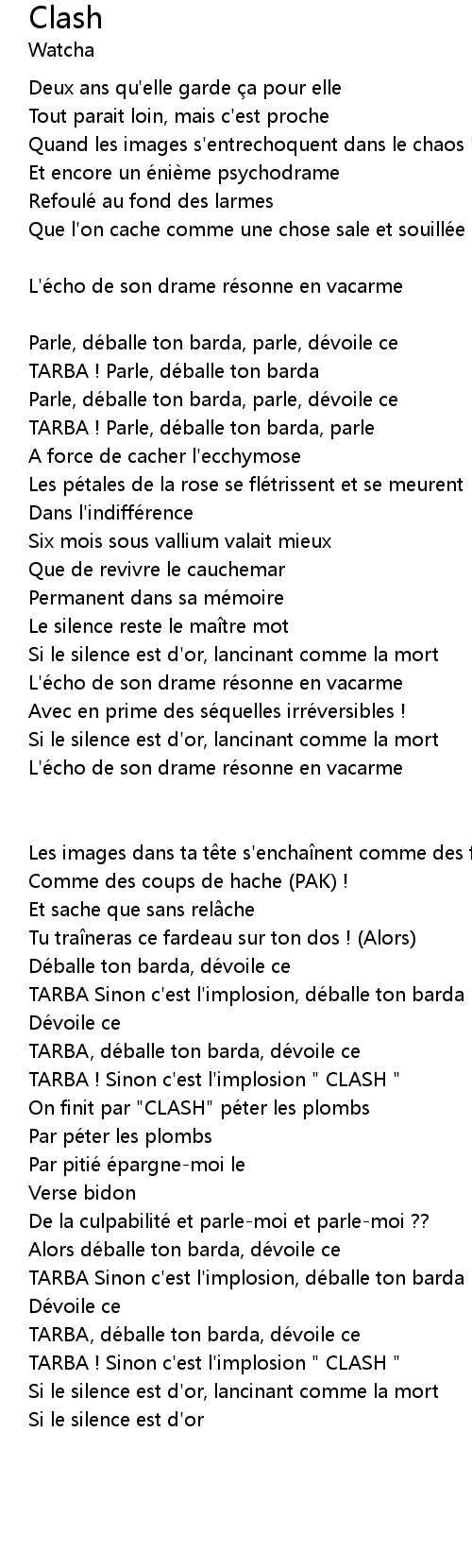 | TARBA ! Sinon c' est l' implosion " CLASH " | |
