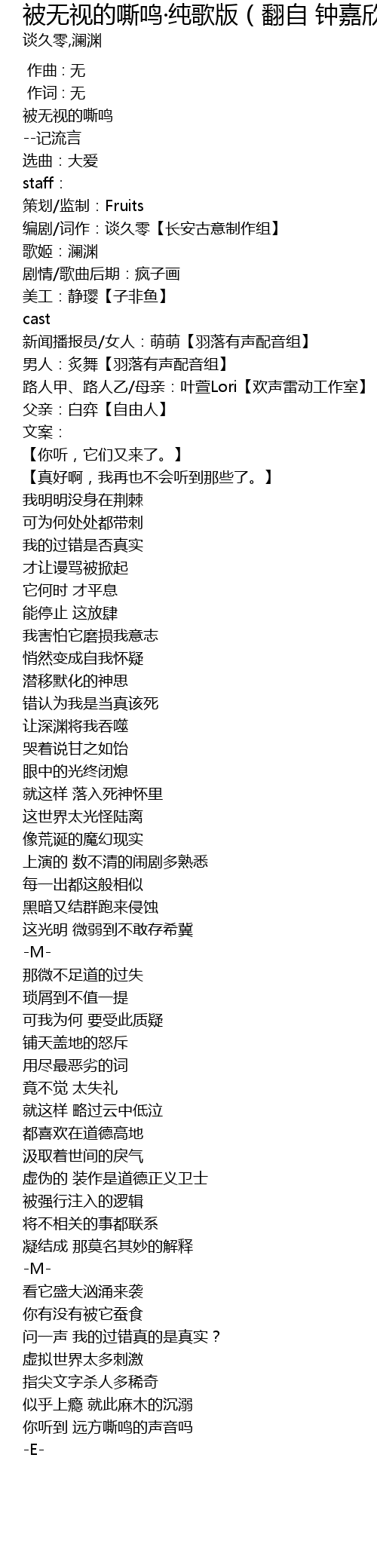 | [00:15.09] | 剧情/歌曲后期:疯子画 |