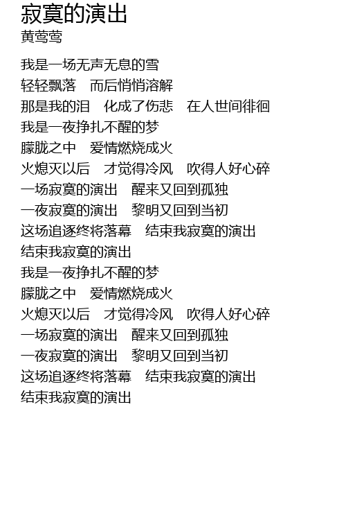 | [01:32.10] | yī chǎng jì mò de yǎn chū xǐng lái yòu huí dào gū dú |