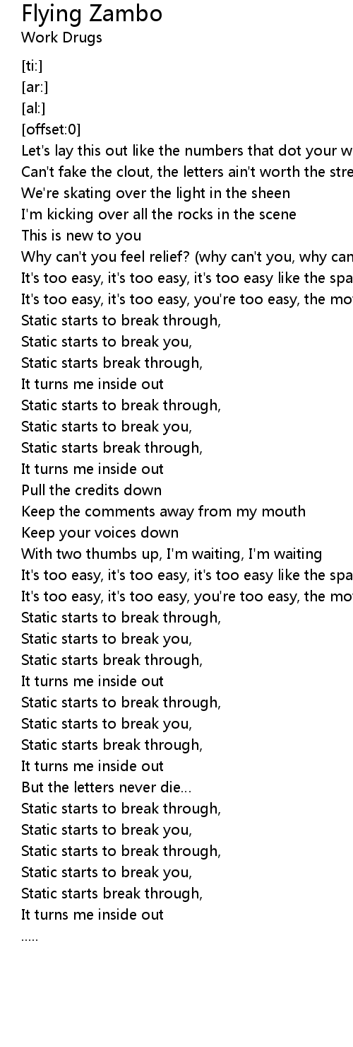 | [01:51.40] | It' s too easy, it' s too easy, it' s too easy like the spark on a tv |