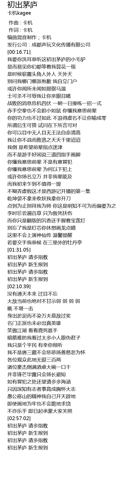 | [03:00.69] | 初出茅庐 请多指教 |
