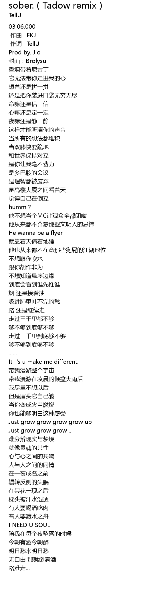 | [00:01.000] | 作词 : TellU |