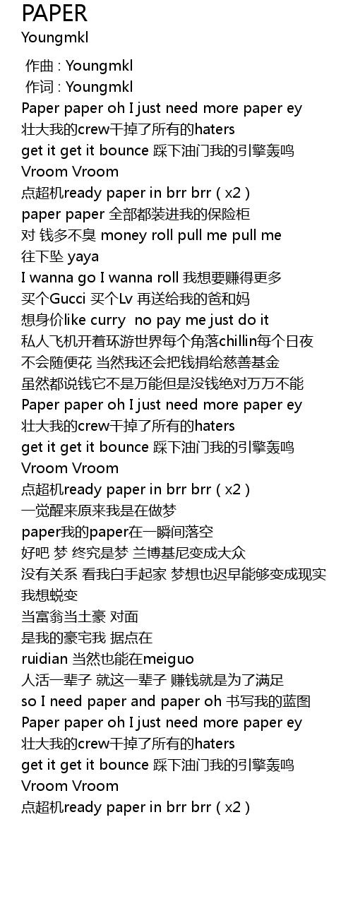 | [00:37.73] | paper paper 全部都装进我的保险柜 |