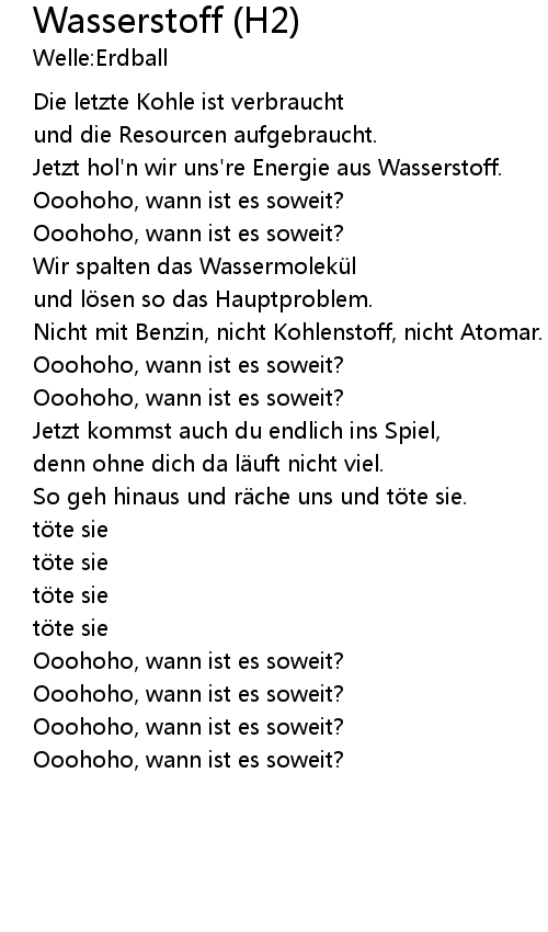 | Jetzt hol'n wir uns're Energie aus Wasserstoff. | |