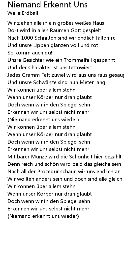 | Song | Niemand Erkennt Uns |