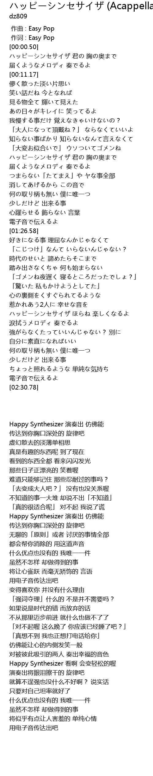 | [02:00.66] | ハッピーシンセサイザ ほらね 楽しくなるよ |
