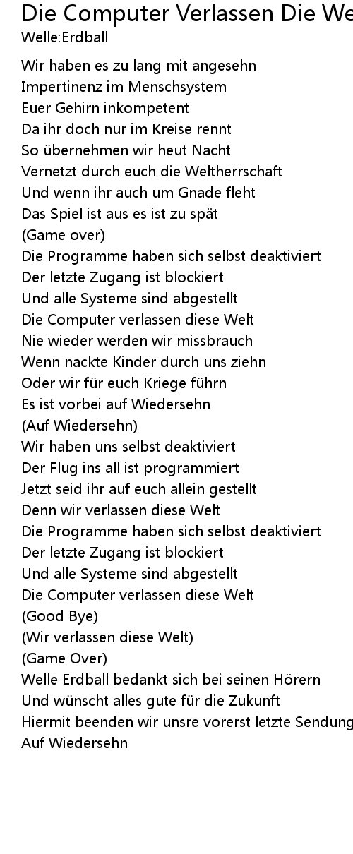 | Song | Die Computer Verlassen Die Welt |
