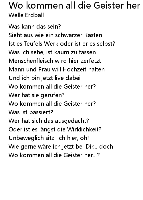 | Song | Wo kommen all die Geister her |