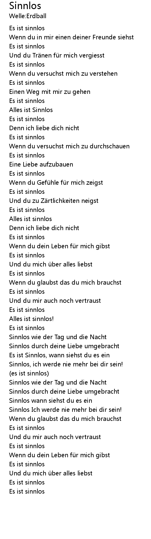 | Sinnlos Ich werde nie mehr bei dir sein! | |