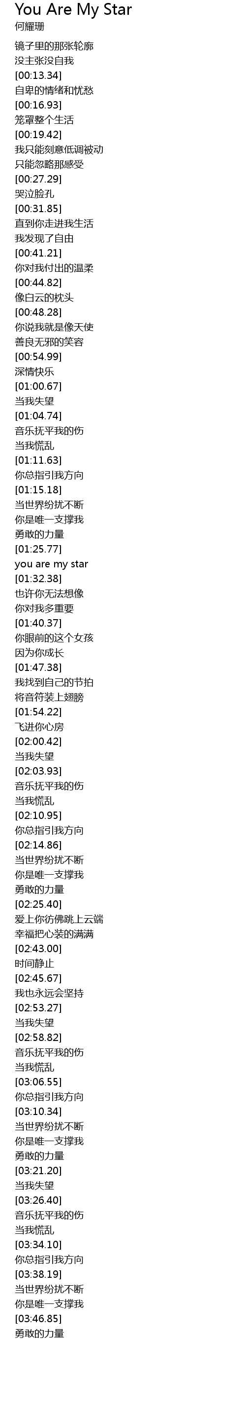 | [01:28.76] | you are my star |